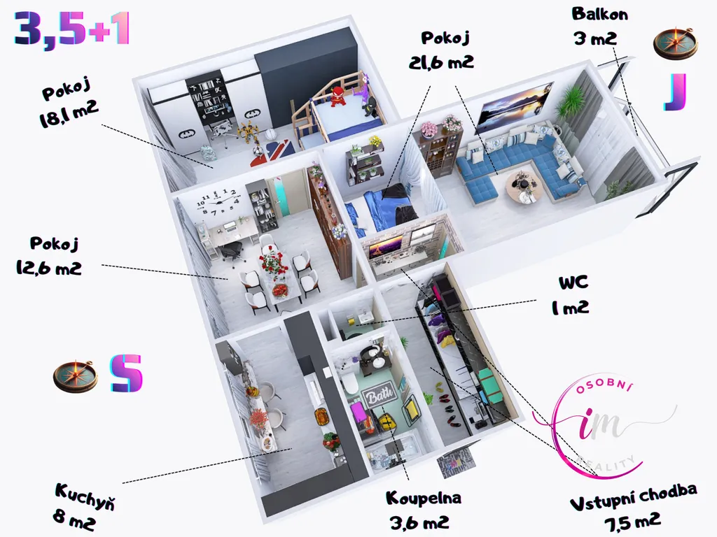 Na jižní stranu balkón máte,