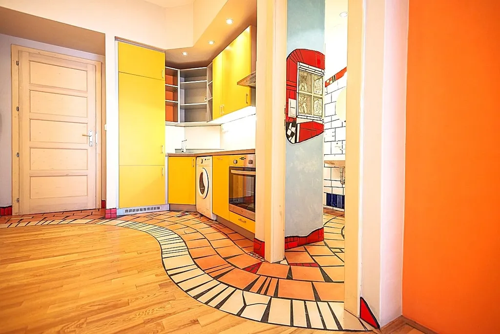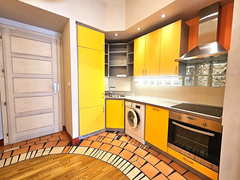 Krásný stylový byt v centru Smíchova - pronajmeme nezařízený byt o dispozici 1+kk, 38 m2, Praha 5 - Smíchov, ulice Viktora Huga, 3. patro v cihlovém domě s novým výtahem. Byt i dům jsou po kompletní vkusné rekonstrukci ve stylu rakouského architekta Hundertwassera. Dům je velmi klidný, obývaný výhradně jen slušnou klientelou. Orientace bytu je na východ do ulice - díky oknu s trojskly je hluk z ulice ale minimální.
