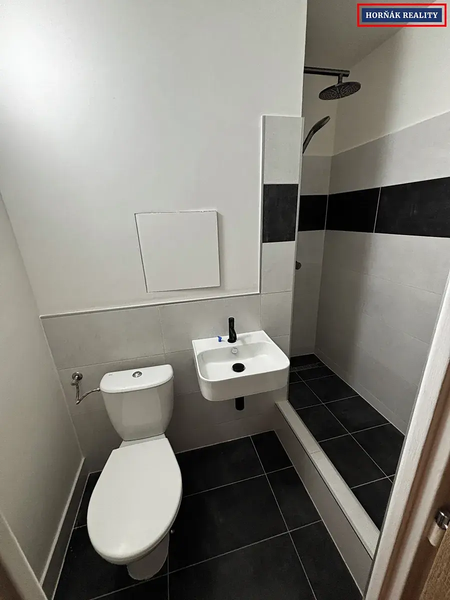 Bytová jednotka má kompaktní vyhledávanou dispozici 1+kk. Skládá se ze vstupní předsíně, obývacího pokoje s přípravou pro kuchyňskou linku, lodžií orientovanou na východ ( atraktivní výhled ), koupelny s toaletou, umyvadlem a praktickým sprchovým koutem.