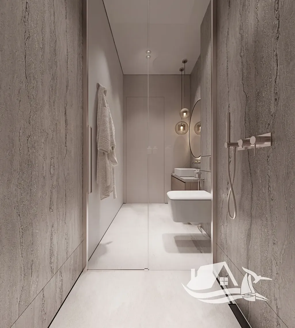 Nabízený apartmán situovaný v prvním patře vás okouzlí svým velkorysým prostorem a dokonalou dispozicí se dvěma ložnicemi a dvěma koupelnami. Vnitřní obytná plocha o výměře přes 95 m² plynule navazuje na krytou verandu o rozloze 17,5 m², odkud si můžete každodenně vychutnávat nerušené výhledy na azurové Středozemní moře. Interiér je navržen v nadčasovém minimalistickém stylu s důrazem na funkčnost a estetiku. Na detailech se zde nešetřilo – těšit se můžete na špičkové italské materiály, mramorové povrchy a chytře skryté úložné prostory. K bytu náleží také vlastní parkovací stání a skladovací místnost.