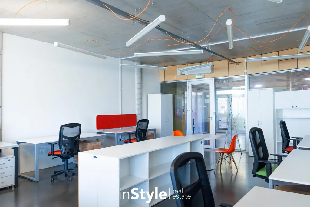 Prostory a kanceláře jsou vybaveny moderním nábytkem, pracovními stoly, židlemi, klimatizací a designovým osvětlením. Aktuálně je kancelář připravena pro využití až 8 osobami, ale nic nebrání i případnému rozšíření. Společné prostory budovy tvoří kuchyňka, sociální zázemí, sprcha, zasedací místnost i výtah.
