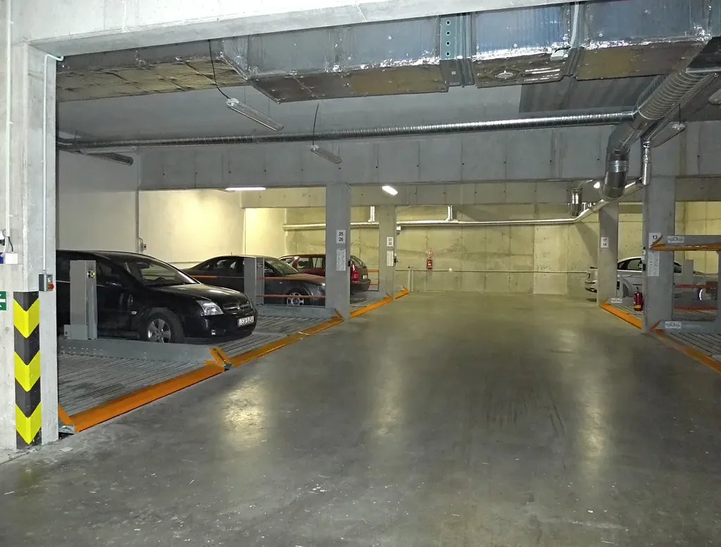 Jedná se o dolní pozici vhodnou pro osobní vozidla s max. výškou 150cm. V parkovací hale je 33 zakladačových parkovacích stání. Vjezd do garážové haly je vraty na dálkové ovládání. Měsíční náklady spojené s užíváním PS jsou 565,-Kč. Parkovací stání je v tuto chvíli pronajato, výpovědní lhůta činí jeden měsíc.