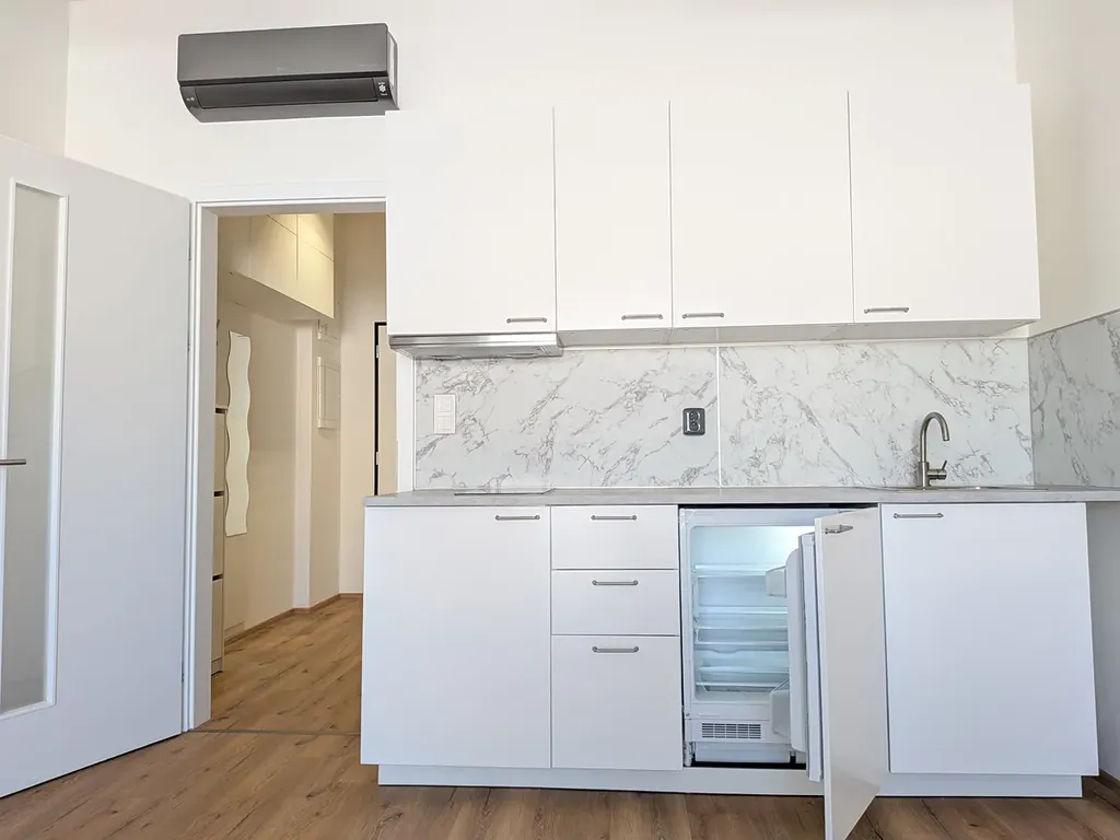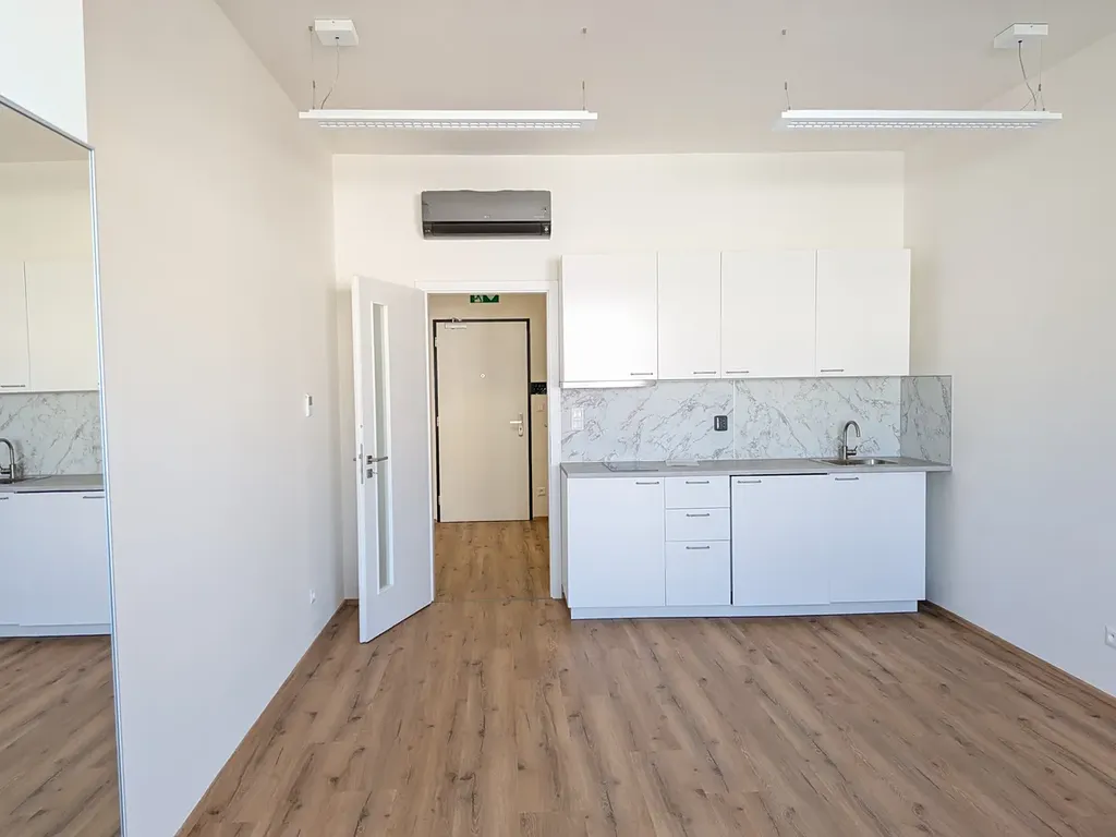 Ve výhradním zastoupení majitele nabízíme k pronájmu zcela novou neužívanou jednotku 1 + kk s podlahovou plochou 33,6 m2 + 9 m2 terasa v moderní novostavbě domu Meridiem na ulici Komárovské. Jednotka, která je umístěna ve 2.NP/7 domu s výtahem s orientací na Z, je připravena k okamžitému pronájmu a nabízí pro nájemce maximální komfort užívání.