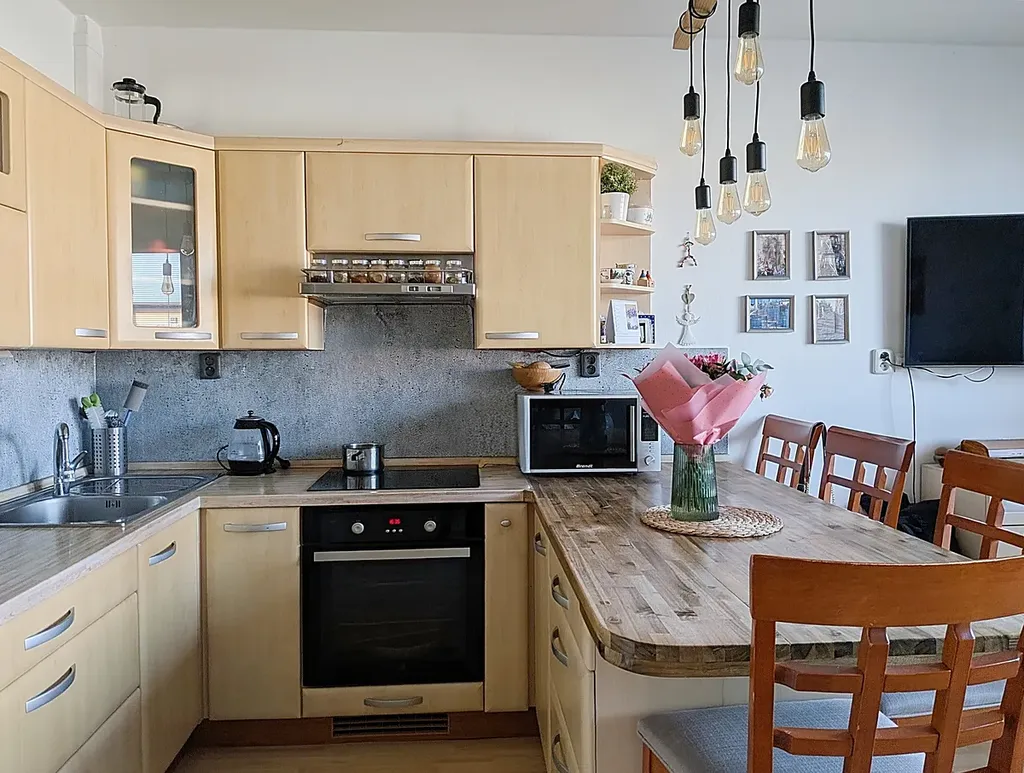 Dovolujeme si vám nabídnout zprostředkování koupě bytu 2+kk s terasou v 8. NP cihlového domu s výtahem na ulici Sedláčkově v Líšni. Dům byl stavebně dokončen přibližně před patnácti lety, majitel je prvním vlastníkem. Byt s užitnou plochou 49 m2 + 10 m2 terasa má východní orientaci s výhledem do vnitrobloku. Z předsíně je vstup do obývacího pokoje s kuchyňským koutem (19 m2) ze kterého je přístupná terasa a druhý pokoj (20m2). Koupelna je vybavena vanou, umyvadlem, otopným žebříkem, přípojkou pro pračku a je společná s toaletou. K bytu náleží zděná sklepní kóje.