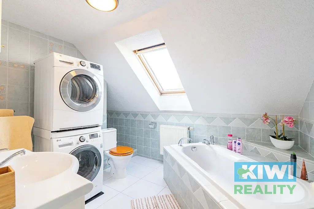 Dům je vybaven nábytkem na míru a nabízí elegantní, promyšlené interiéry. Kuchyně je plně vybavena moderními spotřebiči a poskytuje ideální zázemí pro každodenní vaření i rodinná setkání. Koupelny jsou prostorné a vybavené mimo jiné pračkou a sušičkou.