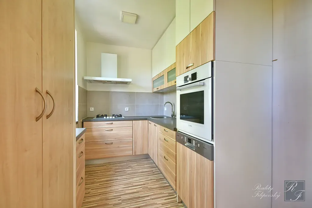 Bytová jednotka je aktuálně nově vymalována a jsou zbroušeny parketové podlahy. V nedávné době byla zrekonstruována koupelna, toaleta i kuchyně. Ta je vybavena elektrickou troubou, plynovou varnou deskou i myčkou nádobí.