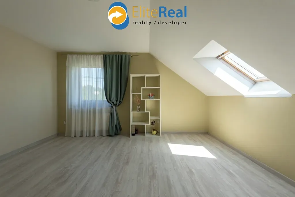 2 NP: galerie, koupelna se sprchovým koutem a WC 8m2, pokoj 22 m2, pokoj 20 m2, pokoj 16 m2, se vstupem na lodžii 16,5 m2 (jihovýchodní orientace) a výstupem do dalšího pokoje 19 m2, šatna 11 m2, pokoj 18,5 m2.
