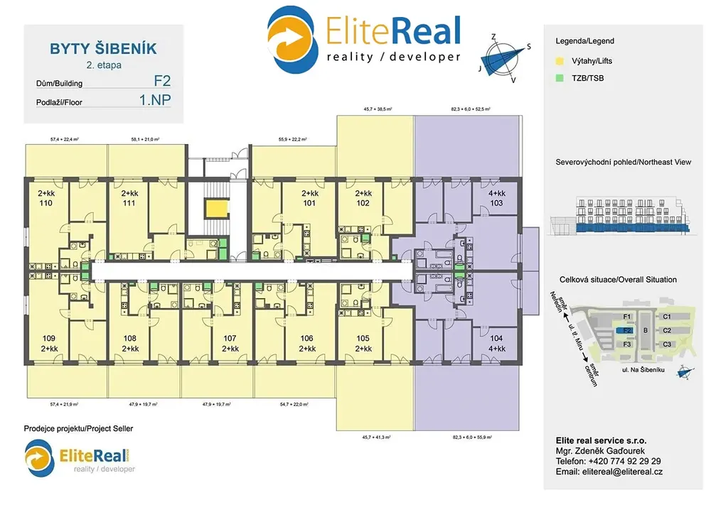 Prodáno 90% bytů. Elite real service s.r.o., prodejce projektu, Vám nabízí prodej nové bytové jednotky přímo v centru města Olomouce v developerském projektu Nový Šibeník 2.etapa (předpokládaný termín dokončení 12/2025). Bytová výstavba je situována v exkluzivní lokalitě přímo v centru města v blízkosti ulice Na Šibeníku v městské části Nová Ulice, Olomouc. Bytová jednotka F2.103 4+kk je orientována na jihozápad. Plocha jednotky 79,90 m2 + plocha terasy na terénu 53,9 m2 + plocha terasy nad terénem 5,8 m2. Zajistíme Vám bezplatně financování nemovitosti. Nabízíme klientům služby vlastního hypotečního centra s výhodami, které jsme pro Vás s bankovními ústavy připravily. Kupte si nové nízkonákladové bydlení - bytový dům je zařazen do energetické třídy B. Půdorys bytové jednotky, který zde prezentujeme, je základní. Dispozici nové jednotky a design si můžete upravit dle vlastních požadavků. Jednotky je možné slučovat i rozdělovat dle fáze výstavby. Nechte si postavit nový byt dle vašich představ. K novému bytu je možno dokoupit sklep nebo vnitřní parkovací stání. Standardní vybavení bytů splňuje požadavky moderního bydlení (keramická podlaha, obložkové zárubně, moderní keramické obklady, francouzské okna, atd.). Klientům nabízíme možnost kompletního návrhu a řešení interiéru. Výjimečná investiční příležitost koupě nového bytu přímo v centru města u tramvajové zastávky s docházkovou vzdáleností 7 minut pěšky do historického centra. Pro investory zajišťujeme bezplatně následný pronájem, případně i správu nemovitosti. Doporučujeme osobní jednání a prohlídku výstavby - volejte makléře. Bližší informace k bytovému projektu a největší nabídku novostaveb - nových bytů, bytů na prodej, bytů k pronájmu - naleznete na našich webových stránkách.