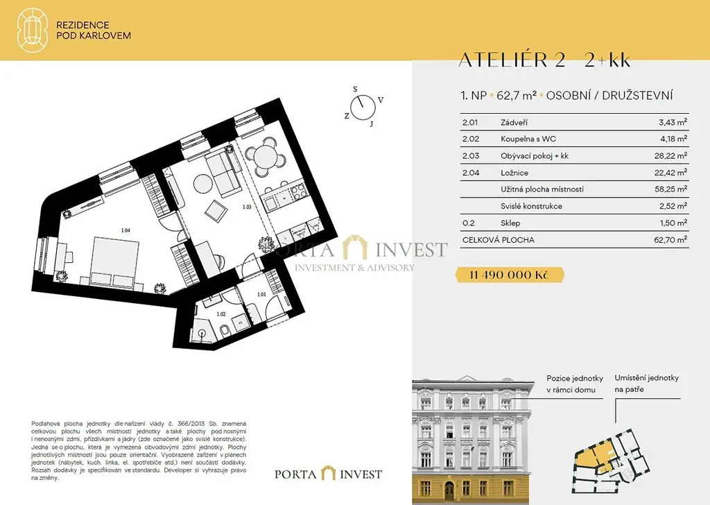 Hledáte výjimečný domov, který spojuje velkorysý prostor, prestižní lokalitu a nezapomenutelné výhledy? Představujeme vám unikátní ateliér 2+kk o výměře 61,2 m² v exkluzivní Rezidenci Pod Karlovem.