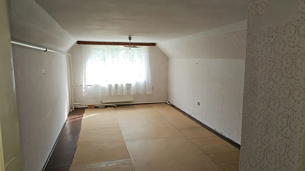 V podkroví je chodba, dva pokoje a dva úložné prostory. Garáž a dílna je přístupná samostatným vchodem.