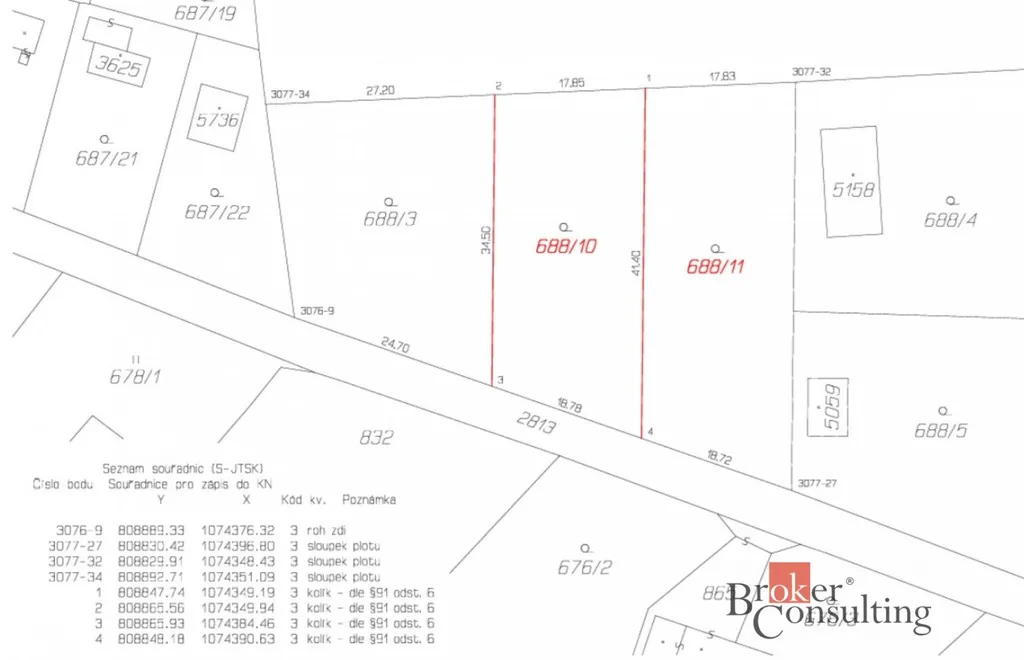 Pozemek bude před prodejem oddělen geometrickým plánem.