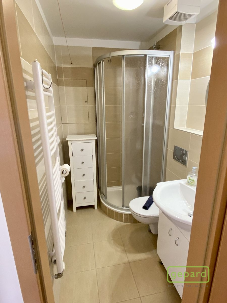 Představujeme na pronájem bytovou jednotku o velikosti 1+kk s komorou, která se nachází v klidné části města Mníšku pod Brdy, v ulici Ke škole. Bytová jednotka se nachází ve 3.patře se severozápadní orientací a svou dispozicí nabídne vstupní chodbu s vestavěnou skříní, obývací pokoj s kuchyňskou částí, koupelnu se sprchovým koutem, toaletou + bude k dispozici nová pračka. V obývacím pokoji je umístěná jednolůžková postel, šatní skříň, komoda a psací stůl. V celém bytě je plovoucí laminátová podlaha, v koupelně pak dlažba. Okna jsou dřevěná třívrstvá, topení – centrální plynové.