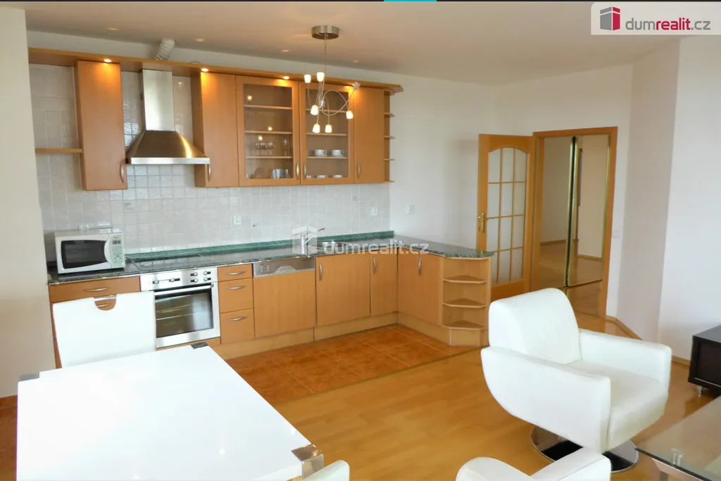 Dominantou bytu je krásně prosvětlený vzdušný obývací pokoj 30,4 m² zařízený kvalitním nábytkem, s francouzským oknem a vstupem na terasu. Součástí místnosti je i kuchyňská linka plně vybavená kvalitními spotřebiči. Ložnice 16,8 m² je též velmi prostorná a světlá, v koupelně 7,5 m² s oknem naleznete velkou vanu i sprchový kout, zvlášť je WC s umyvadlem. V hale o rozloze 14,4 m² jsou umístěné vestavné skříně a další úložný nebo pracovní prostor nabízí velká komora s oknem o rozloze 3,8 m². Celý interiér bytu včetně vybavení obývacího pokoje je krásně sladěný a působí velice příjemně. V suterénu domu je umístěna dobře zabezpečená sklepní kóje 2 m² a garážové stání v podzemní garáži. Další gar. stání v objektu je možné pronajmout. K dispozici obyvatelům domu s 24 hodinovou recepcí je i posilovna.