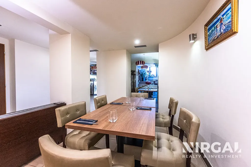 Prostor o celkové výměře 198 m² nabízí široké možnosti využití a vysoký potenciál – od klasického restauračního provozu až po moderní gastronomické koncepty. Interiér je zařízen v elegantním, nadčasovém stylu s důrazem na komfort hostů. Kapacita restaurace činí přibližně 60–70 míst a promyšlené dispoziční řešení zajišťuje jak dostatek soukromí, tak pohodlí při usazování a obsluze hostů.
