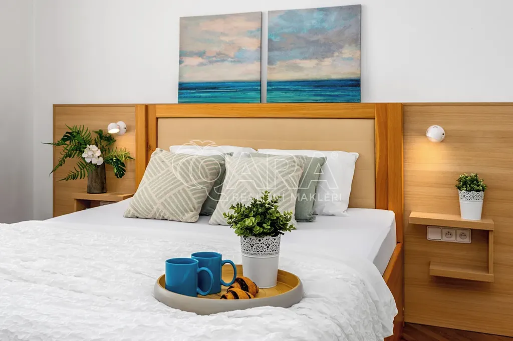 Tento byt prošel přibližně před deseti lety rekonstrukcí, díky níž byla vytvořena moderní a otevřená dispozice, které dominuje obývací pokoj s kuchyňským koutem. Zde se také nachází balkon šikovně orientovaný do klidného vnitrobloku. V zadní části bytu jsou pak dvě samostatné prostorné neprůchozí ložnice a koupelna s vanou, širokým walk-in sprchovým koutem a toaletou.