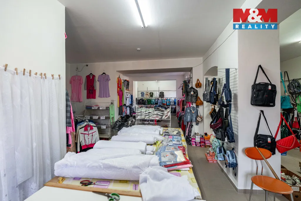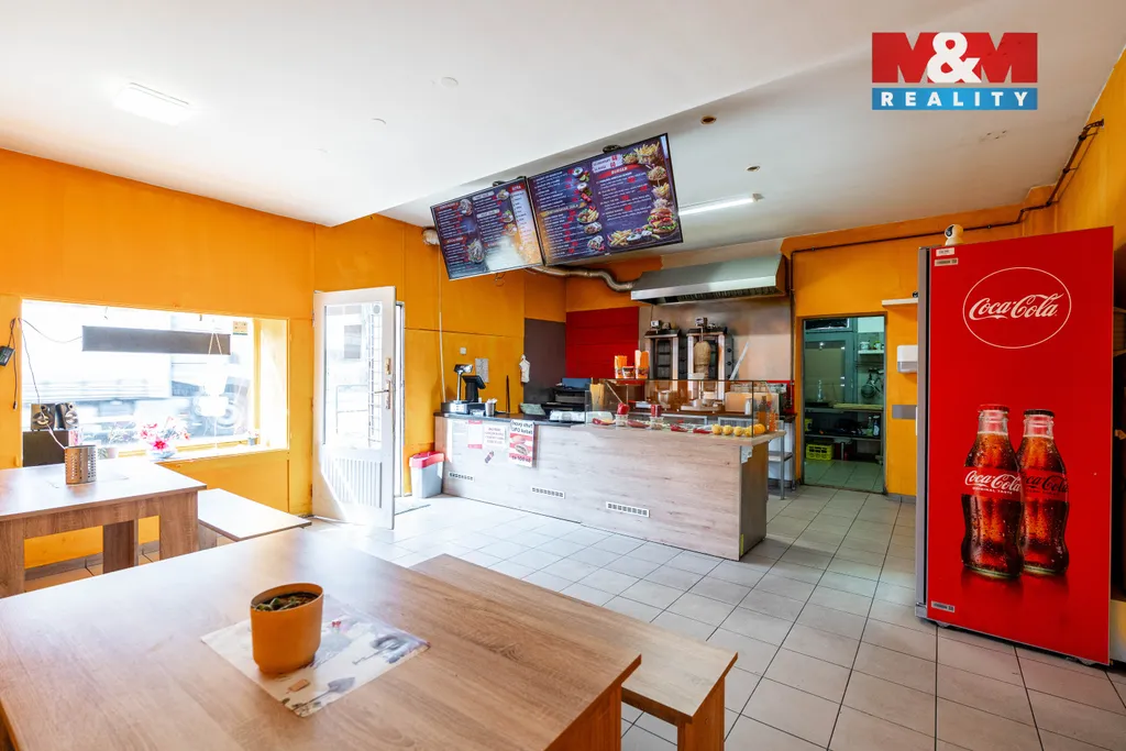 Přízemí: Prostorná obchodní jednotka s výlohami vhodná pro prodejnu či kanceláře. Druhá část je stabilně pronajata zavedenému provozu (Kebab).