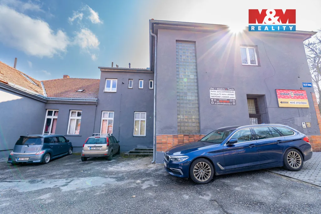 Stav: Hlavní budova má novou střešní krytinu, inženýrské sítě jsou přivedeny. Zázemí: Klíčovým benefitem je vlastní průjezd k druhé budově a parkování přímo u objektu.