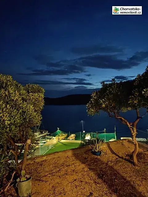 Před apartmánem se nachází velká krytá terasa s výhledem na moře a upravenou zahradu.