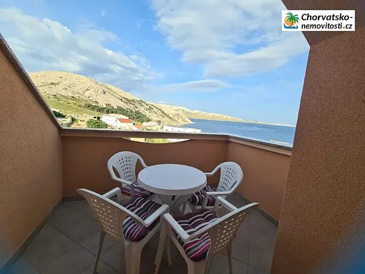Chorvatsko-Nemovitosti.cz má pro Vás apartmán s vyjímečným pohledem na hory a moře jen 100m od moře. Apartmán se nachází v druhém patře malého apartmánového domu a má plochu 45m2. Je kompletně krásně zařízen s parádním výhledem z terasy. Apartmán je umístěn do nenápadného městečka Metajna na ostrově Pag, které je vyjímečné tím, že je klidné a pohodové - má jen 250 stálých obyvatel. Je vhodné pro dovolenou, ale i delší pobyt. Je zasazeno do bílých skal, zeleně a modrou mořskou hladinu. Samozřejmě se do městečka dostanete pohodovou silnicí z pevniny nebo jiných měst ostrova Pag. Ve městě naleznete malý supermarket a restaurace. Náš apartmán má výbornou polohu pro koupání v moři, ale i návštěvu centra městečka nebo výletu do hor. Podrobně o apartmánu: