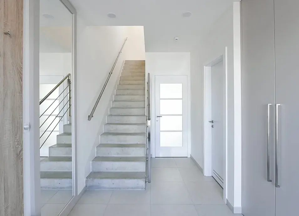Standard domu výrazně převyšuje běžnou nabídku na trhu. Samozřejmostí je podlahové vytápění, rekuperace, chlazení, tepelné čerpadlo IVT, a inteligentní systém ovládání domácnosti, který umožňuje vzdáleně řídit komfort celého domu s maximální jednoduchostí. Atmosféru doplňují dřevěná Euro okna, elektricky ovládané předokenní žaluzie a kvalitní materiály v podobě vinylových podlah a dlažby. Velkoryse řešené vestavěné úložné prostory v každé místnosti jsou citlivě integrovány tak, aby nenarušovaly čistý design interiéru. Detail, který oceníte při každodenním užívání, představuje inteligentně řešené osvětlení chodeb s automatickým spínáním, jež nenápadně přispívá k celkovému komfortu a nadstandardu bydlení.
