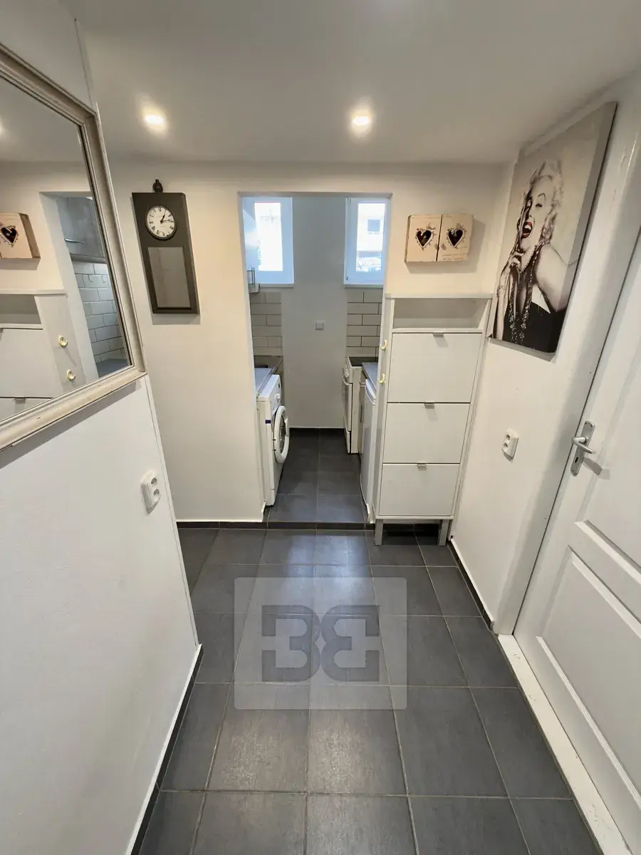 Nabízíme Vám k pronájmu byt 2+1 s obytnou plochou 43 m², situovaný ve 2.NP cihlového domu, v ulici Záběhlická. Byt se sestává ze vstupní chodby, ložnice s manželskou postelí a sušičkou prádla, menší kuchyně vybavené elektrickým sporákem a pečící troubou, je zde také pračka, koupelny se sprchovým koutem, samostatné toalety a obývacího pokoje. Byt se nabízí vybavený viz foto. K bytu náleží sklep. Nájemníci mohou užívat střešní terasu za okny bytu.