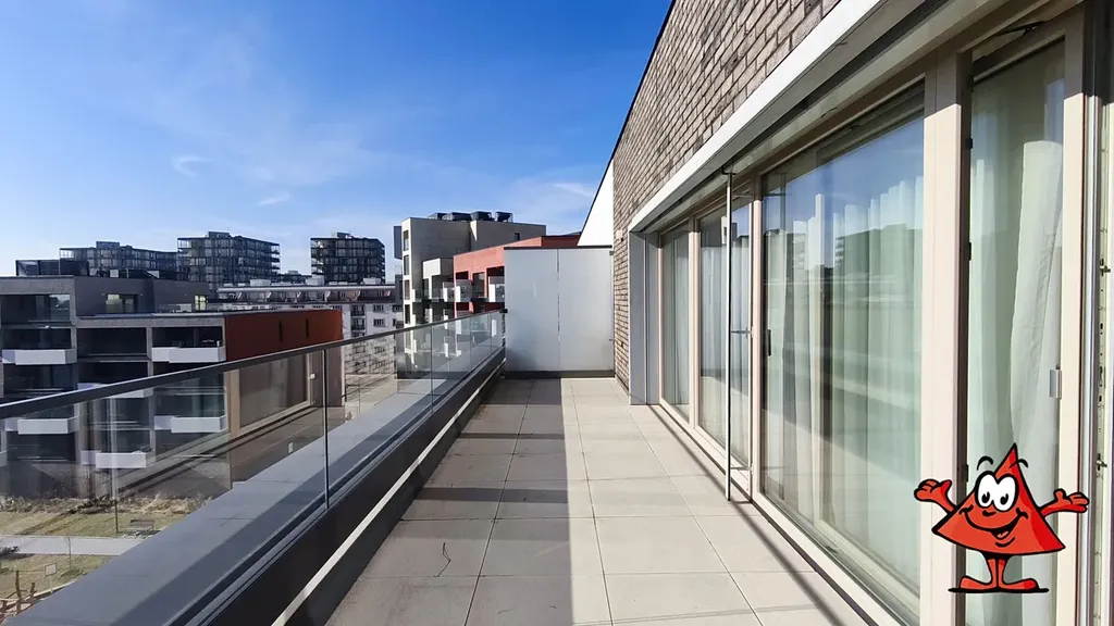 Byt je nezařízený (viz fotografie). Velká terasa je orientovaná do klidného vnitrobloku, což zajišťuje příjemné a tiché prostředí. Okna jsou protihluková, bydlení je tak klidné i přes blízkost centra.