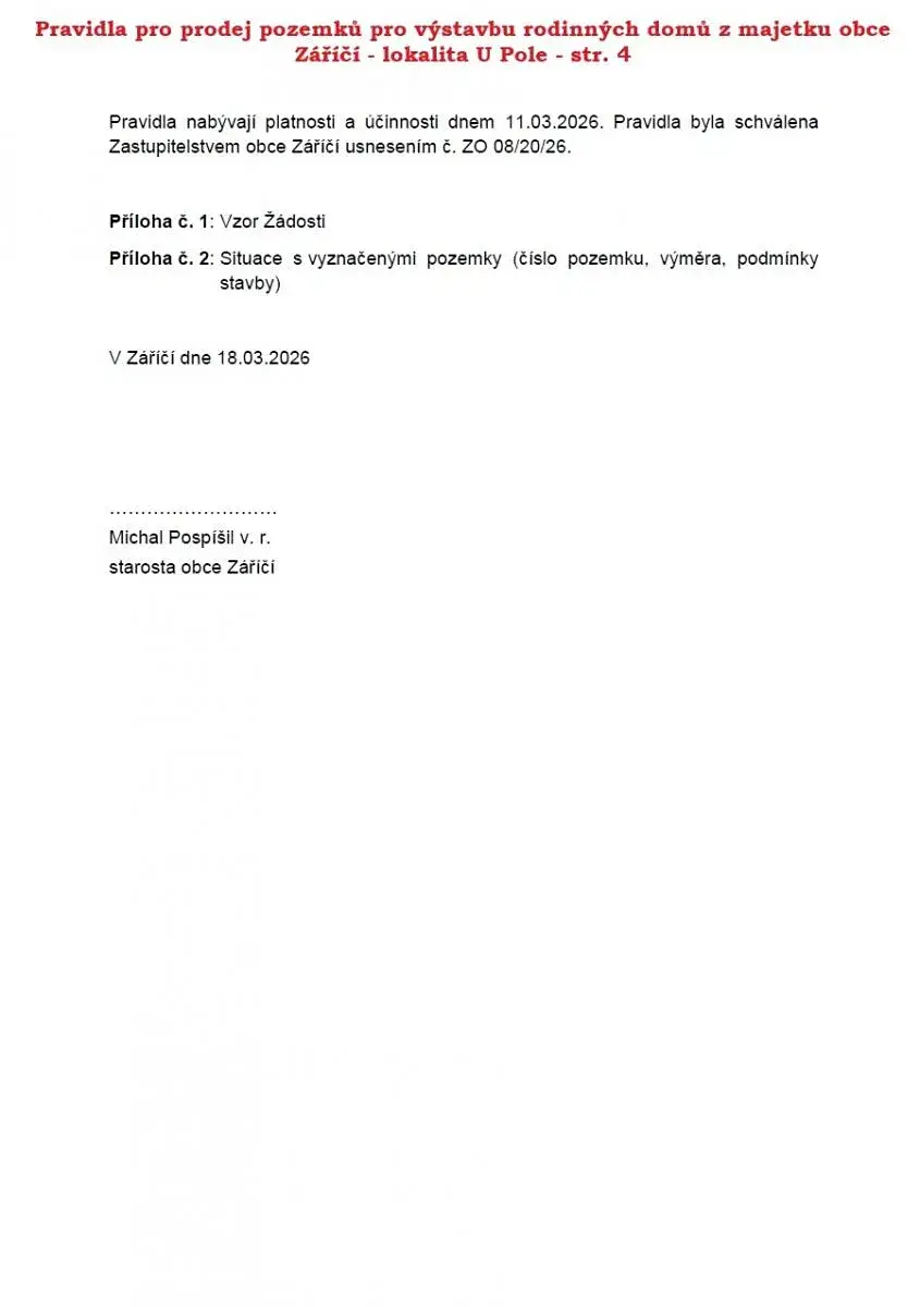 Záměr prodeje pozemků - Obec Záříčí