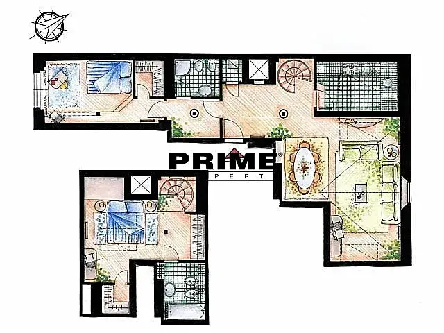 Zrekonstruovaný, 2 ložnicový, zařízený mezonetový byt se 2 koupelnami k pronájmu, 3+1, 108m2, situovaný v 5. a 6. patře kompletně zrenovovaného novobarokního domu s výtahem.