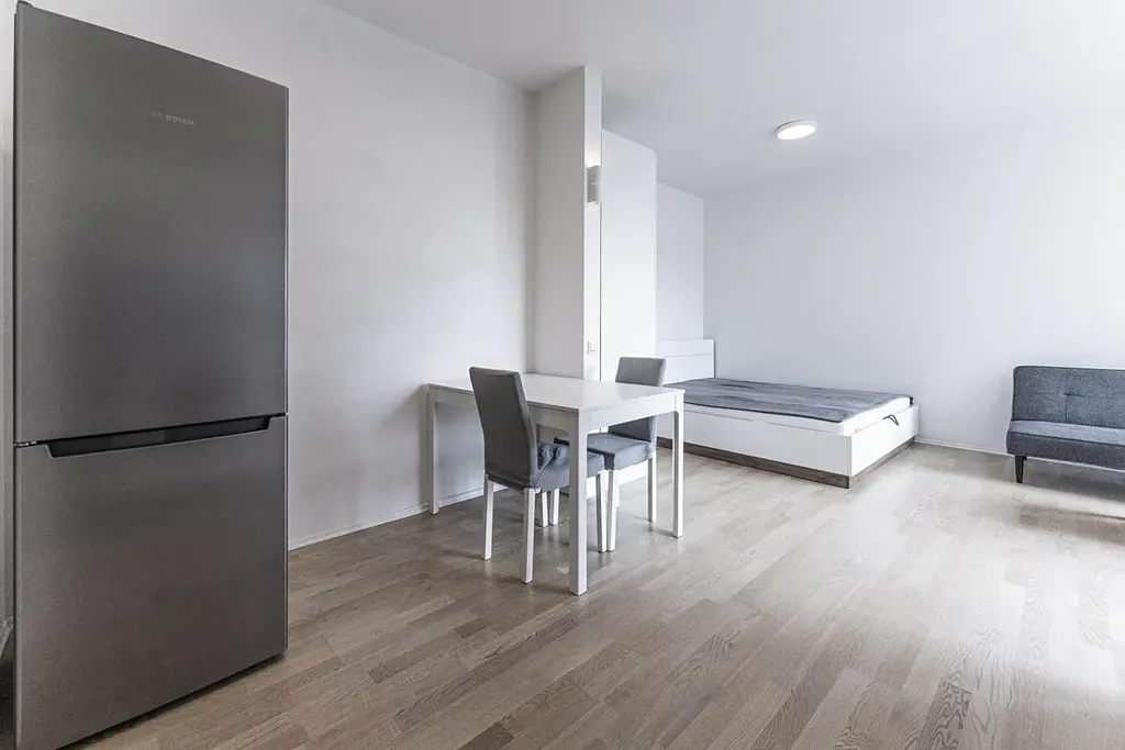 S potěšením Vám nabízíme pronájem zařízeného moderního bytu - studia v 5. NP (4. patro) v ul. Pod Děkankou na rozhraní Nuslí a Podolí. Byt se nachází v oceněném developerském projektu 4U Living, což je elegantní moderní komplex s recepcí (pondělí - pátek).