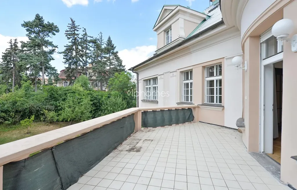 Prostorný světlý a vzdušný byt situován v 1. patře reprezentativní neobarokní vily. Elegantní rezidenční čtvrť s klasickými vilami skvělé kvality ze začátku minulého století, obklopena bohatou zelení okolních parků, nabízí příjemné bydlení v dosahu veškerých služeb.