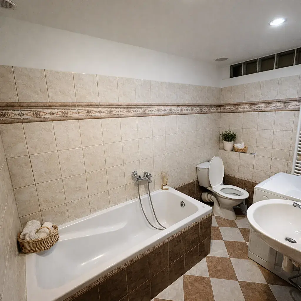 koupelna s vanou a WC