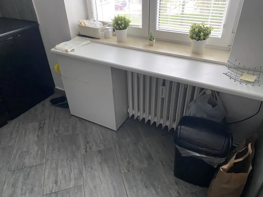 Byt je umístěn do 3. patra domu s novými zvonky, vstupy, zatepením a plastovými okny. Okna směřují na dvě světové strany, okno z kuchyně a ložnice za dům do dvora a balkon u obývacího pokoje je umístěn směrem před dům s výhledem na vchod do domu. Dva samostatné pokoje, velmi atypicky řešené spojení ložnice s obývacím pokojem posuvnou stěnou. Kuchyně s rohovou a moderní kuchyňskou linkou a koupelna s vanou a umyvadlem. Samostatné WC. K bytu patří sklep v suterénu domu.