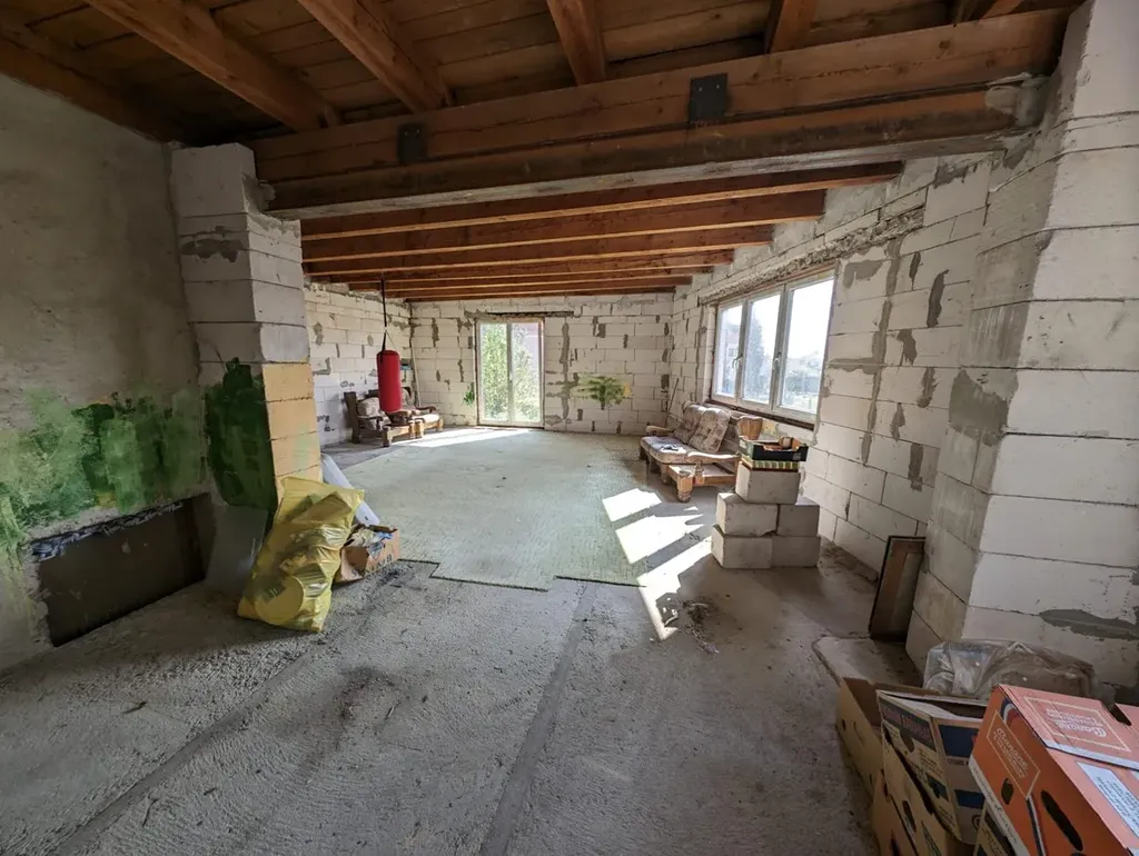 Rozestavěná bytová jednotka 2+kk mezonetového typu o velikosti 83,55 m²se nachází v přízemí s šatnou o velikosti 7,35 m² a schodištěm do patra 76,2 m². K jednotce je kompletní stavební dokumentace. Dodělání bytové jednotky na klíč je neceněno do 1.5 mio Kč.