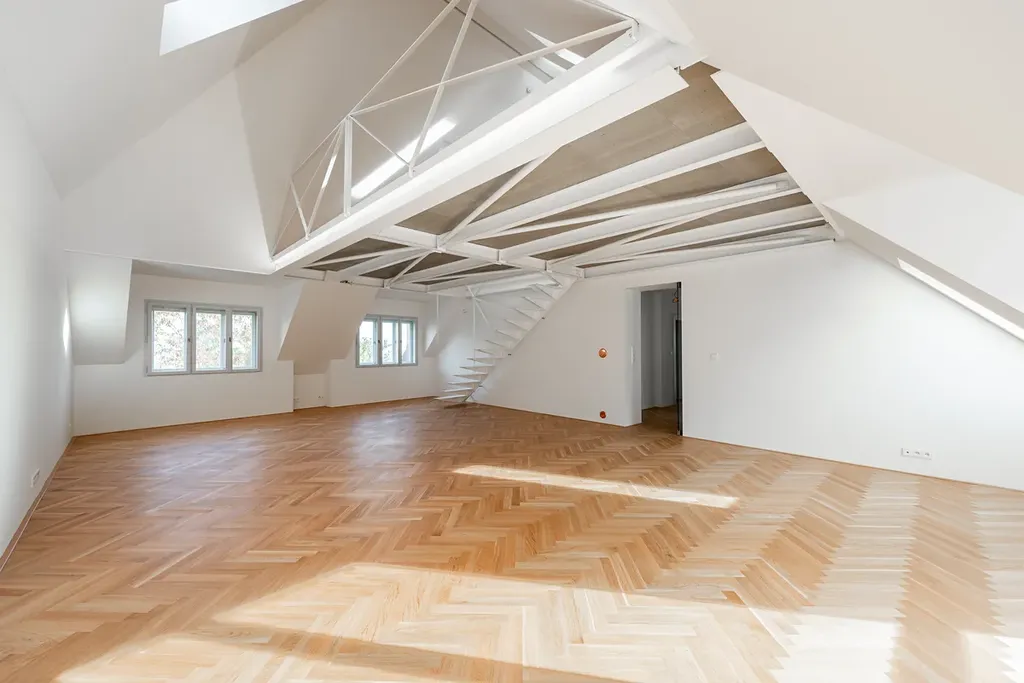 Dispozice je navržena s důrazem na velkorysost a logické členění prostoru. Obytná část s přípravou na kuchyň a krb plynule navazuje na terasu a lodžii orientované do klidného vnitrobloku. Byt dále nabízí tři další pokoje a dvě koupelny – jedna z nich s volně stojící vanou u okna, druhá se sprchovým koutem a vstupem na balkon s výhledem do jedné z nejpůvabnějších ulic Starých Střešovic.