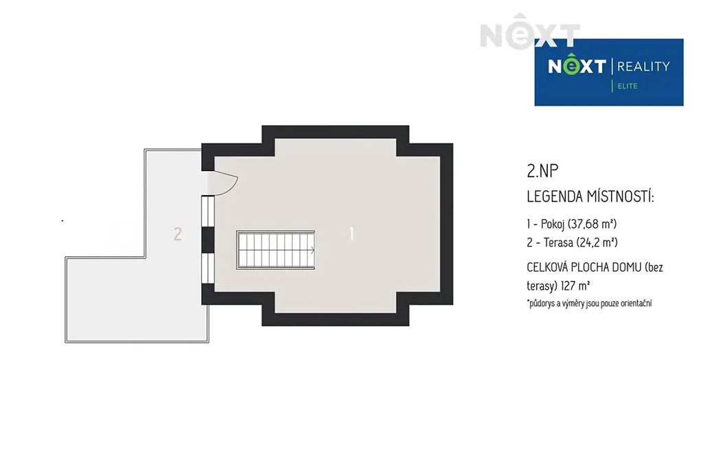 ve druhém podlaží prostorný pokoj se vstupem na terasu