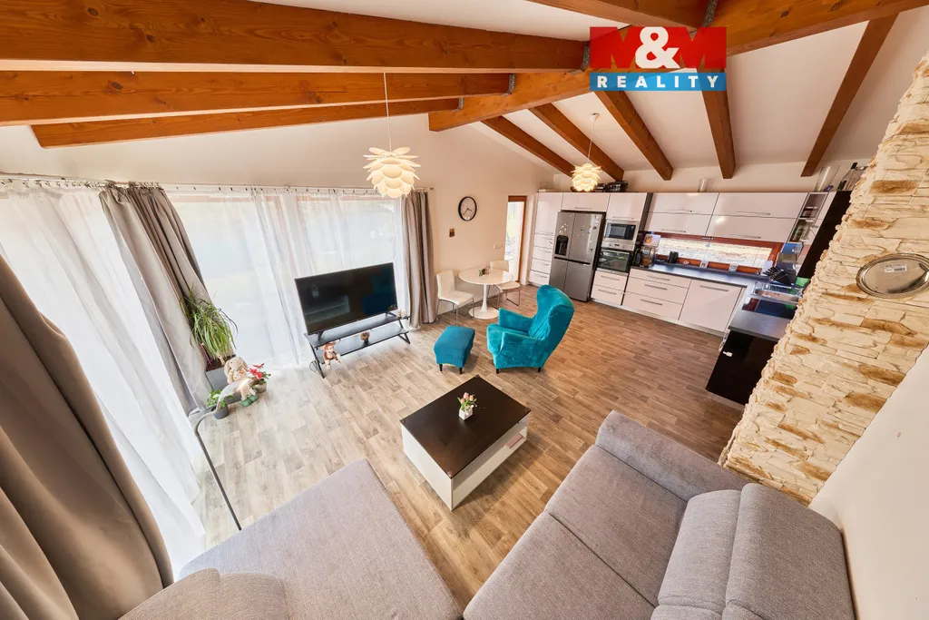 Moderní bydlení zde doplňuje bazén, dvojgaráž a technické řešení, které myslí na pohodlí i úsporný provoz. O tepelný komfort se stará tepelné čerpadlo a podlahové vytápění, zdravé vnitřní prostředí zajišťuje rekuperace i vzduchotechnika vedená pod střechou.