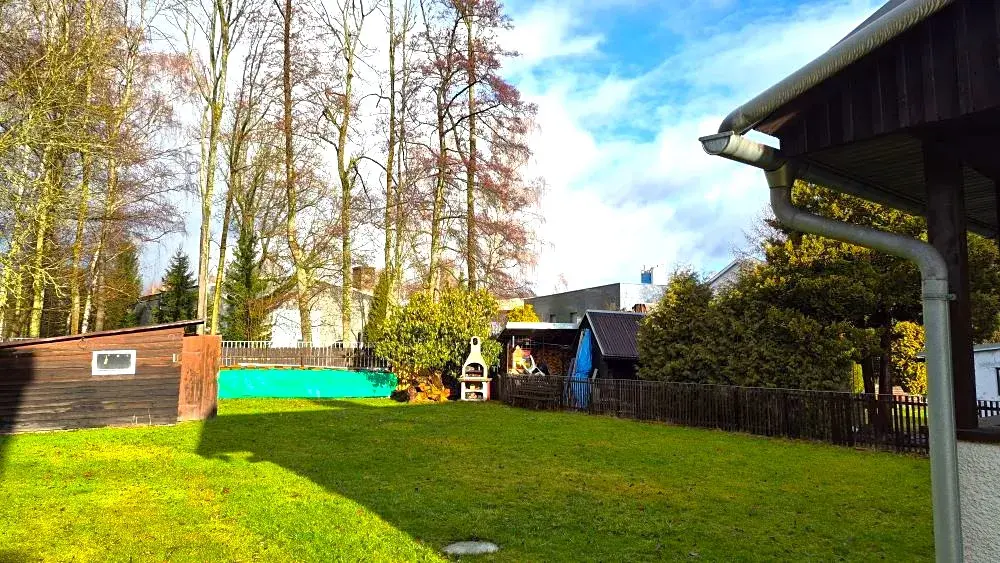 Rozlehlá zahrada s možností parkování, vybudování garáže apod...