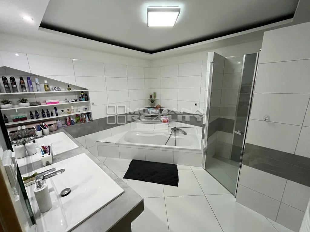 Prodej rodinného dvougeneračního domu, který je rozdělen na dvě bytové jednotky 3+kk se samostatnými vstupy. V prvním nadzemním podlaží bytová jednotka o dispozici 3+kk s výměrou 94 m2, s možností dodělání terasy. Bytová jednotka po kompletní rekonstrukci, nové podlahy vinyl, obklady koupelna, wc, dále kuchyně na zakázku včetně spotřebičů. V obývací části je vystaven nový komín s napojením na krb. Topení řešeno nové podlahové, v kombinaci s radiátorem. Z kuchyňské části je vstup do suterénu, kde se nachází technická místnost, letní kuchyně (dílna), sklep a vstup na zahradu. V druhém nadzemním podlaží bytová jednotka 3+kk o celkové výměře 81 m2 s novou terasou, plovoucími podlahami, nová koupelna a zánovní kuchyně. Dům je po kompletní rekonstrukci, elektřiny, vody, má novou střechu, včetně zateplení a fasády a je ve výborném technickém stavu. Topení řešeno dvěma samostatnými elektrickými kotli, ohřev vody přes bojlery. Vše samostatně řešeno pro každou bytovou jednotku zvlášť, včetně elektroměrů. Dům je napojen elektřinu, vodovod, kanalizaci, má vlastní studnu na závlahu zahrady. Udržovaná zahrada s domkem na nářadí, v zadní části pozemku brána s vjezdem. Energetický štítek bude dodán, ve fotodokumentaci přiložené půdorysy, včetně řezu. Velmi klidné místo s výbornou dostupností do Olomouce, více informací Vám rád zodpovím osobně.