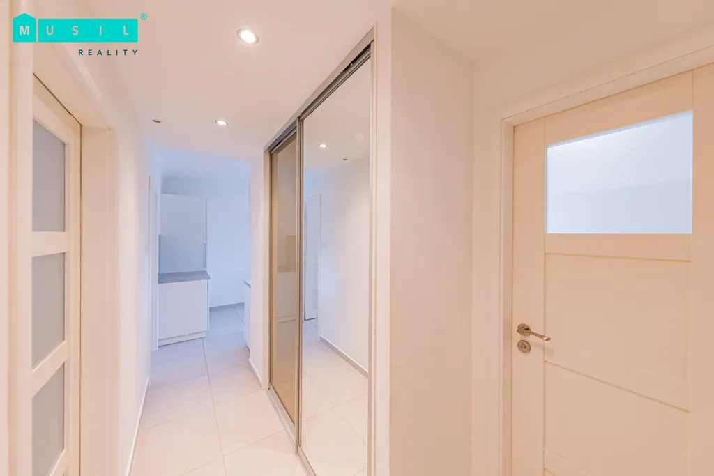 Dispozice bytu tvoří dva neprůchozí pokoje a samostatná kuchyně se zánovní kuchyňskou linkou vybavenou základními spotřebiči (plynový sporák a elektrická trouba). Prostorná koupelna disponuje sprchovým koutem a toaletou. Výhodou je vlastní plynový kotel zajišťující vytápění bytu. K jednotce náleží také sklepní kóje.