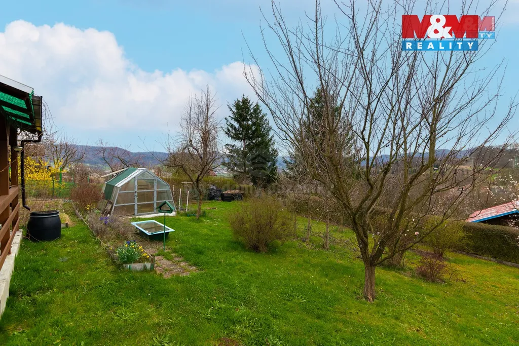 Představte si ráno, kdy vás budí švitoření ptáků a první paprsky slunce dopadají na terasu vaší vlastní chatičky. Držíte v dlaních šálek horké kávy, sedíte pod pergolou a před vámi se rozprostírá úchvatné panorama celého Děčína. Výhledy na České Švýcarsko a České středohoří přímo na dosah. Tady, v objetí ovocných stromů, starosti všedního dne prostě neexistují. Nabízíme vám útulnou, částečně podsklepenou dřevěnou chatičku (24 m²) s vlastní dílničkou, která stojí na slunném, mírně svažitém pozemku o rozloze 417 m². Zahrada s bohatou historií, skleníkem a vzrostlými stromy čeká na nového majitele, který jí vdechne nový život a naváže na péči, které se jí doposud dostávalo. Do chaty je zavedena elektřina, na pozemku je užitková voda a pramen pitné vody najdete jen pár kroků od branky (150 m). Prostorná terasa pro letní večery a dílna pro vaše kutilské sny. Přijďte se zamilovat na osobní prohlídku. Tato zahrádka není jen pozemek, je to místo pro vaše nové vzpomínky. Více informací v RK.