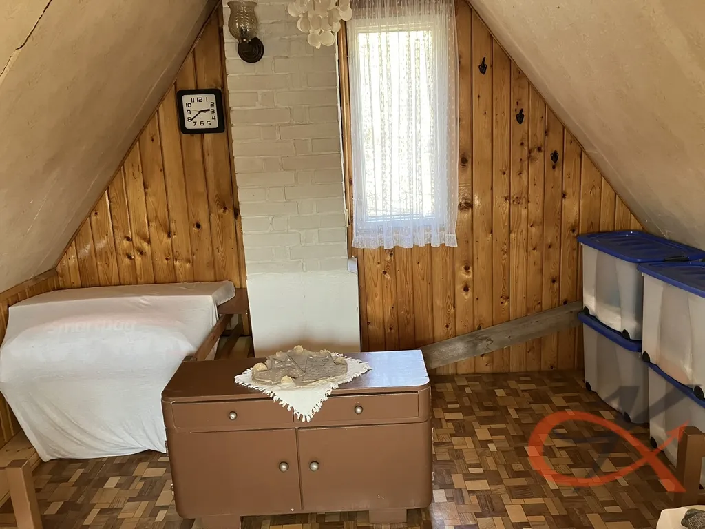 V přízemí chaty je situována obytná kuchyně s kuchyňskou linkou, indukční varnou deskou, velkou lednicí s mrazákem. Dále se zde nachází potravinová komora, koupelna se sprchovým koutem, umyvadlem, žebříkovým radiátorem a WC. Přístup do II. nadzemního podlaží je po dřevěném schodišti (přístup rovněž z úrovně terénu – svažitý terén), kde se nachází prostorná obývací místnost s výhledem na terasu, která zve k letnímu posezení. Z obytné místnosti je přístupno podkroví, kde je situována v celém prostoru jedna obytná místnost.