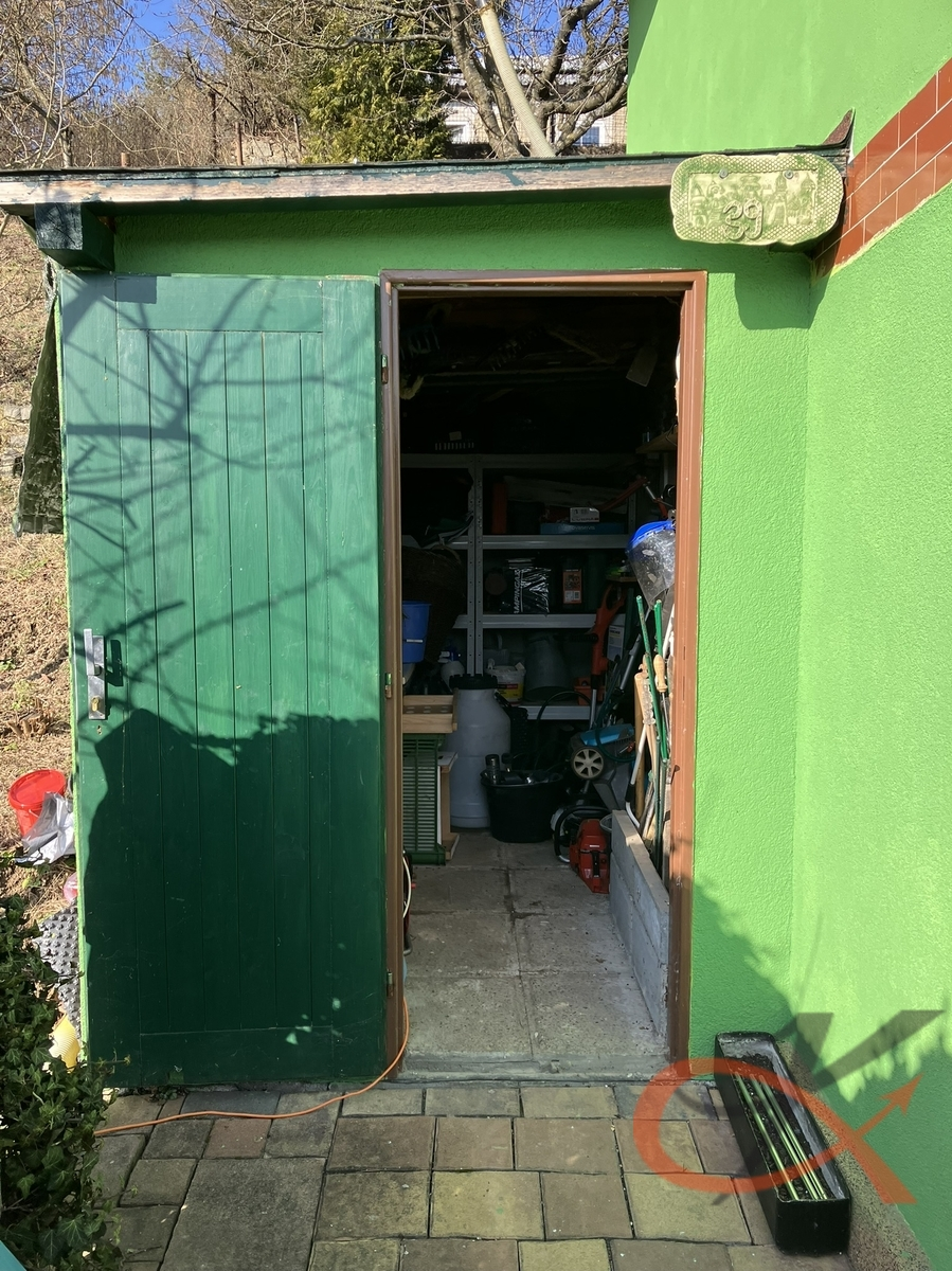 K objektu chaty je přistavěna vedlejší stavba s přístřeškem, kterou ocení každý majitel jako prostor pro úschovu zahradnického nářadí či další využití. Parkování je zajištěno na veřejném pozemku ve vlastnictví obce Myslejovice.