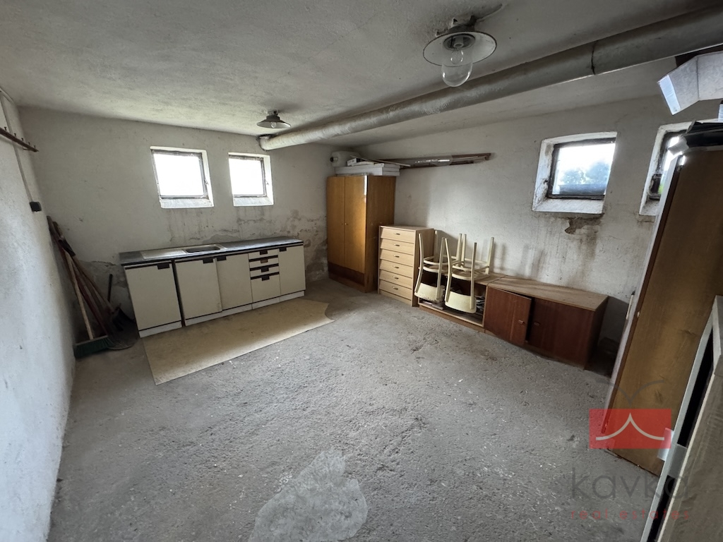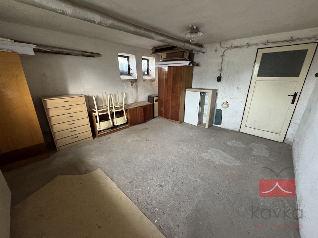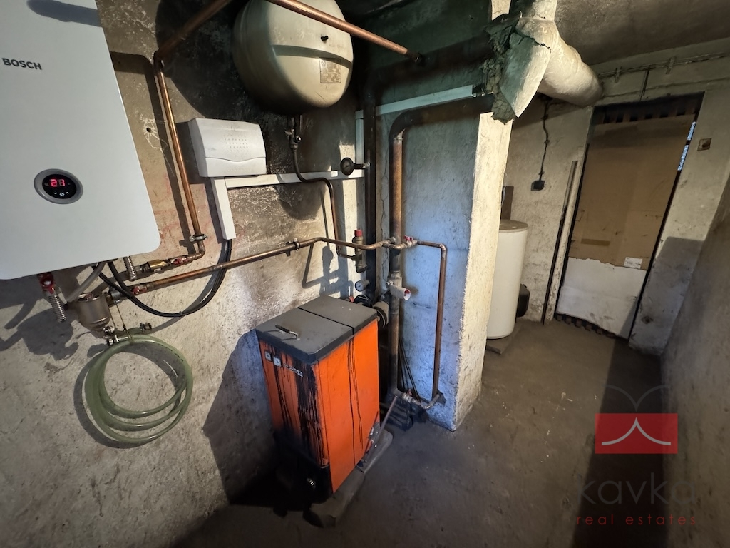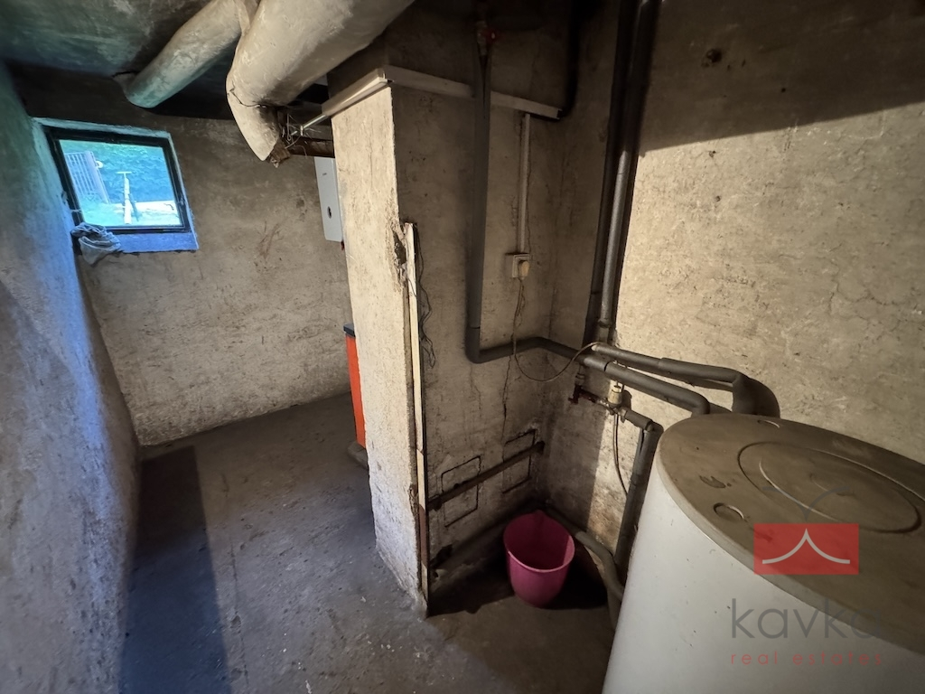 Byt nabízí praktické dispoziční řešení: vstupní chodba, samostatné WC, koupelna s vanou, kuchyň s jídelnou a spíží, obývací pokoj a ložnice. Velkým benefitem jsou také nadstandardní úložné prostory – sklepní kóje o velikosti 19 m², vlastní kotelna (6 m²) a sklad tuhých paliv (5 m²).