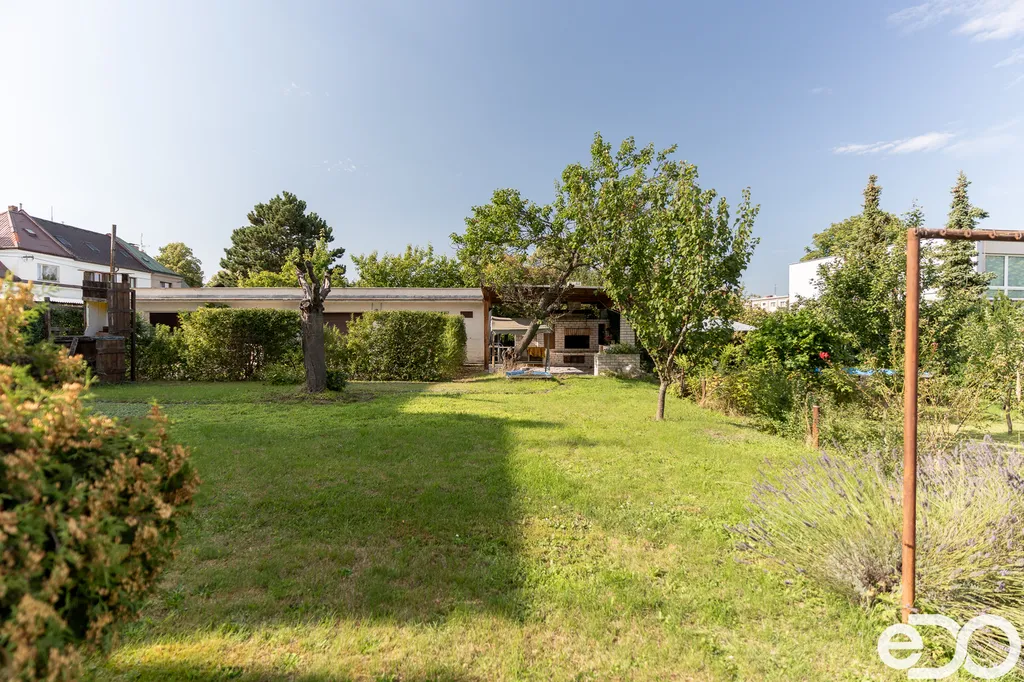Zahrada je osázena vzrostlými stromy a nabízí bohatou úrodu – k dispozici jsou jabloně, broskvoně i keře s malinami a ostružinami. Součástí je také pergola pro příjemné posezení a bazén, který oceníte zejména v letních měsících.