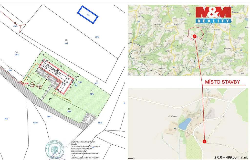 Máte už dost hledání domu, kde nikdy nesedí dispozice, barva fasády nebo velikost zahrady? V Krasoňovicích na vás čeká 800 m² čistého štěstí, kde si postavíte přesně to, co chcete – a žádný developer vám do toho nebude mluvit. A nejlepší zpráva? Všechno papírování je už vyřízené. Schválený projekt na moderní bungalov i stavební povolení jsou připravené, takže můžete rovnou začít stavět. O vodu se postará vrtaná studna, elektřina (230/400 V) už je taky na místě a povolení k výstavbě vlastní čističky odpadních vod (ČOV) připraveno. Když k tomu přidáme energetický štítek plánovaného domu A, znamená to, že místo astronomických účtů budete raději investovat do pohodlné zahradní houpačky nebo grilu. Lokalita je klidná, ideální pro ty, kdo chtějí bydlet na dosah civilizace, ale přesto si užívat venkovskou pohodu. Takže, jestli jste připraveni dát vale panelákovému balkonu a začít plánovat, kam zasadíte první jabloň, tady je to správné místo.
