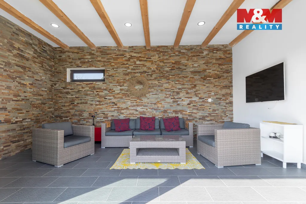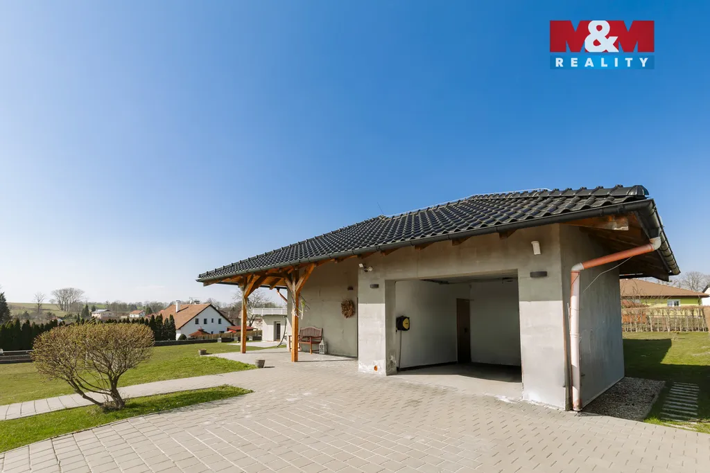 Nabízíme Vám k prodeji rodinný dům o dispozici 5+kk o celkové užitné ploše 190 m2 na klidném místě obce Jistebník s celkovou výměrou pozemku 1989 m2. Z prostorné chodby jsou vstupy do samostatných dvou dětských pokojů, ložnice, technické místnosti a dvou koupelen s WC. Dále přes křídlové dveře se dostanete do společného prostoru obývacího, jídelního, kuchyňského a relaxačního prostoru s krbem s teplovzdušnou vložkou. Tady je výstup na terasu, orientovanou na jižní stranu, spolu s letním obývacím pokojem. Dům je napojen na obecní vodovod, přes čističku odpadních vod na obecní kanalizaci. Podlahové vytápění a ohřev vody zabezpečeno tepelným čerpadlem vzduch-voda, PENB "A". K dispozici prostorná garáž s úložným prostorem. Náš hypoteční specialista Vám nabídne nejvhodnější financování této výjimečné nemovitosti.