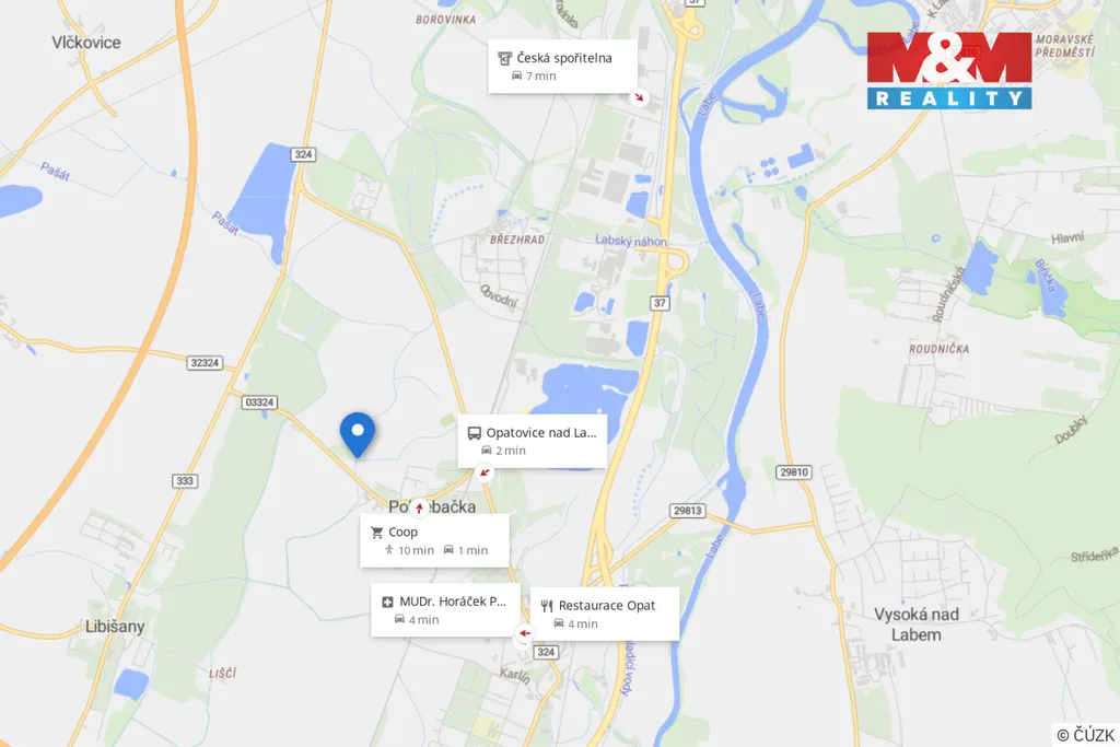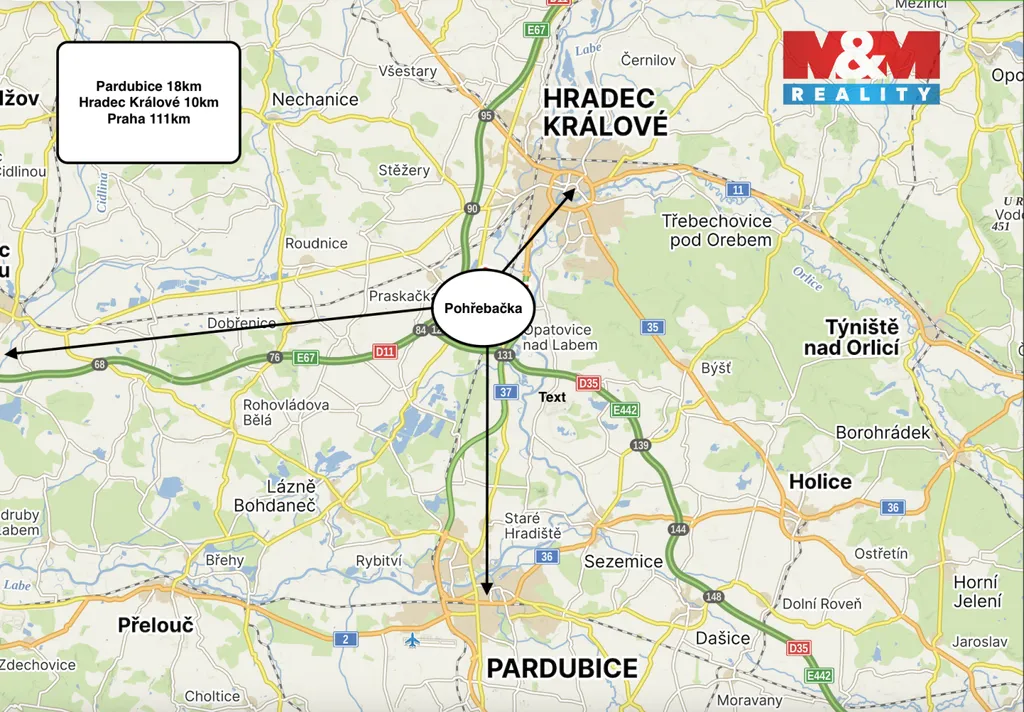 - klidná lokalita s výbornou dostupností – Opatovice nad Labem 2 minuty, Pardubice a Hradec Králové cca 10 minut jízdy