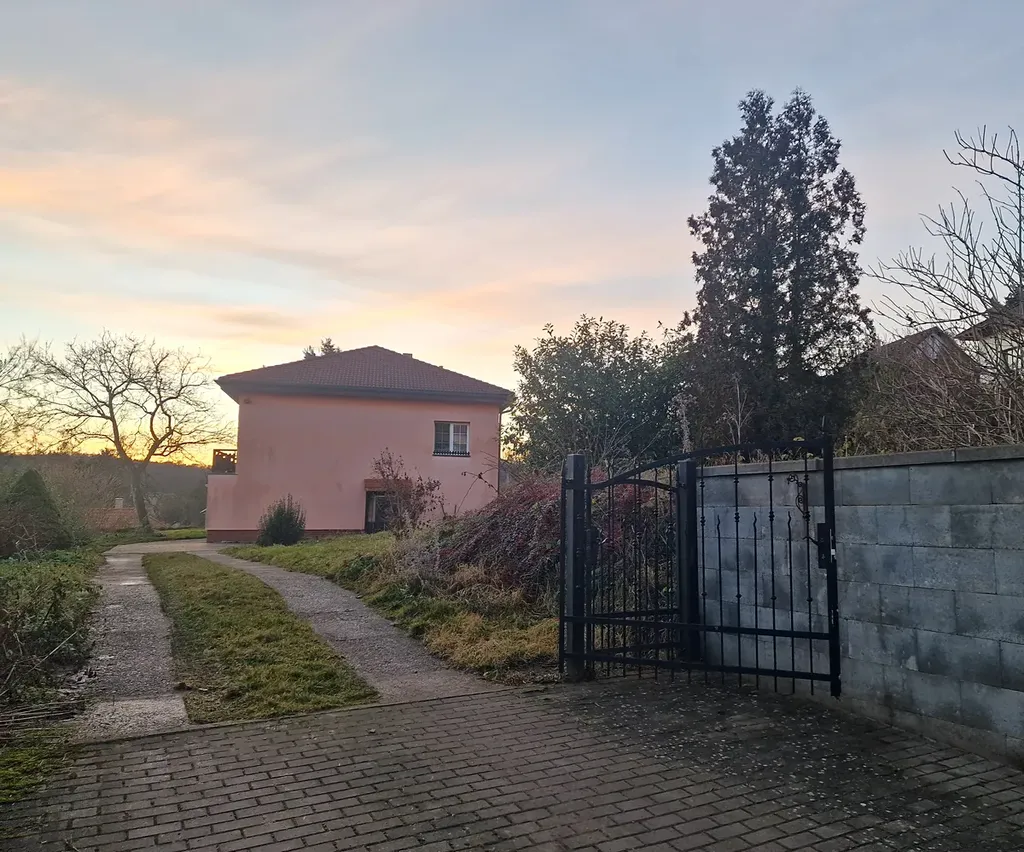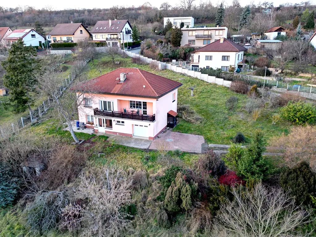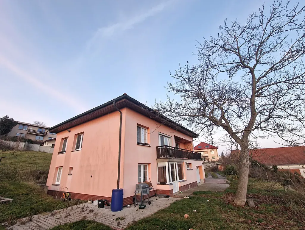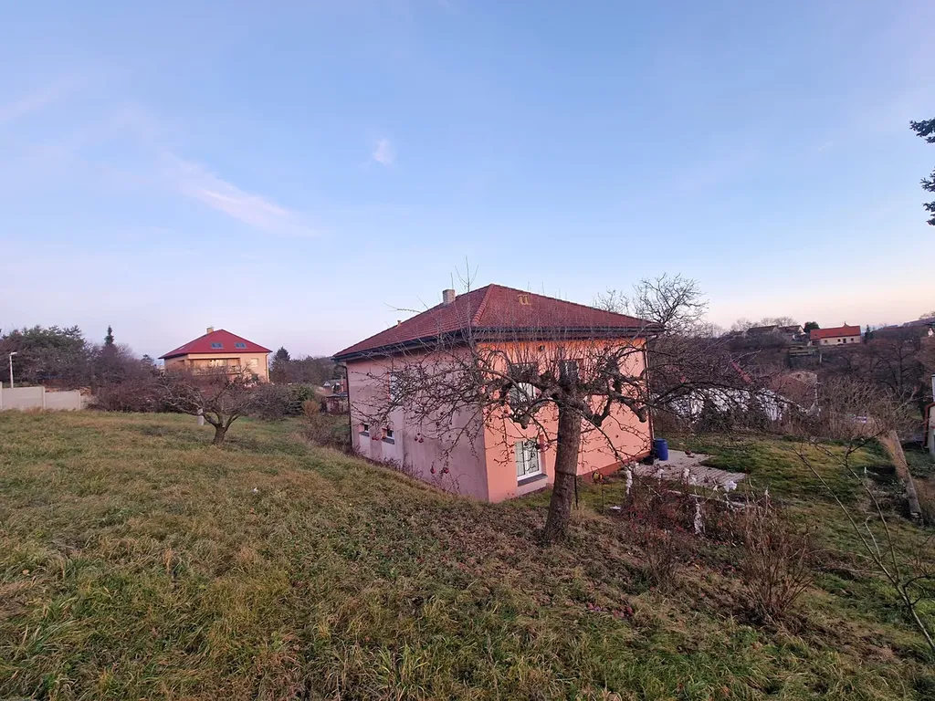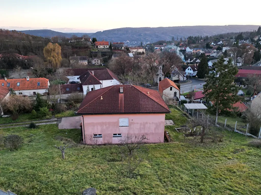 Dům se nachází v centru obce, kdy ze svažitého pozemku, jak jsem již popsal, je opravdu krásný výhled do širokého okolí. Spádovým centrem jsou 4km vzdálené Černošice.