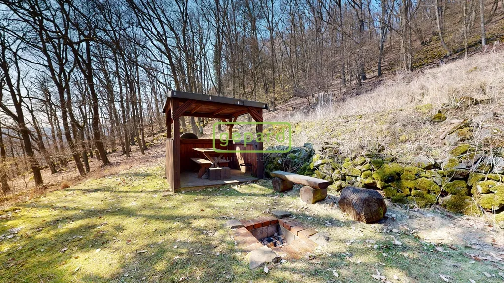 Pozemek o velikosti přes jeden hektar je zásadní benefit celé nabídky. Poskytuje absolutní soukromí, žádné přímé sousedy a prostor, který si můžete přizpůsobit podle sebe. Součástí je kůlna a venkovní posezení s altánem a ohništěm. Okolí Dolních Zálezel patří k nejhezčím částem Českého středohoří – lesy, kopce, výhledy, a přitom rychlá dostupnost do Ústí nad Labem.