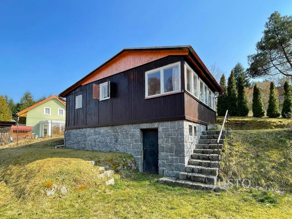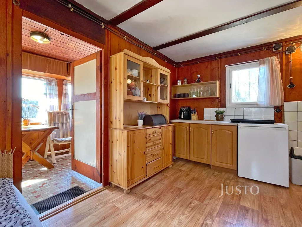 - Jednopodlažní chata s částečným podsklepením, dispozice 2+kk